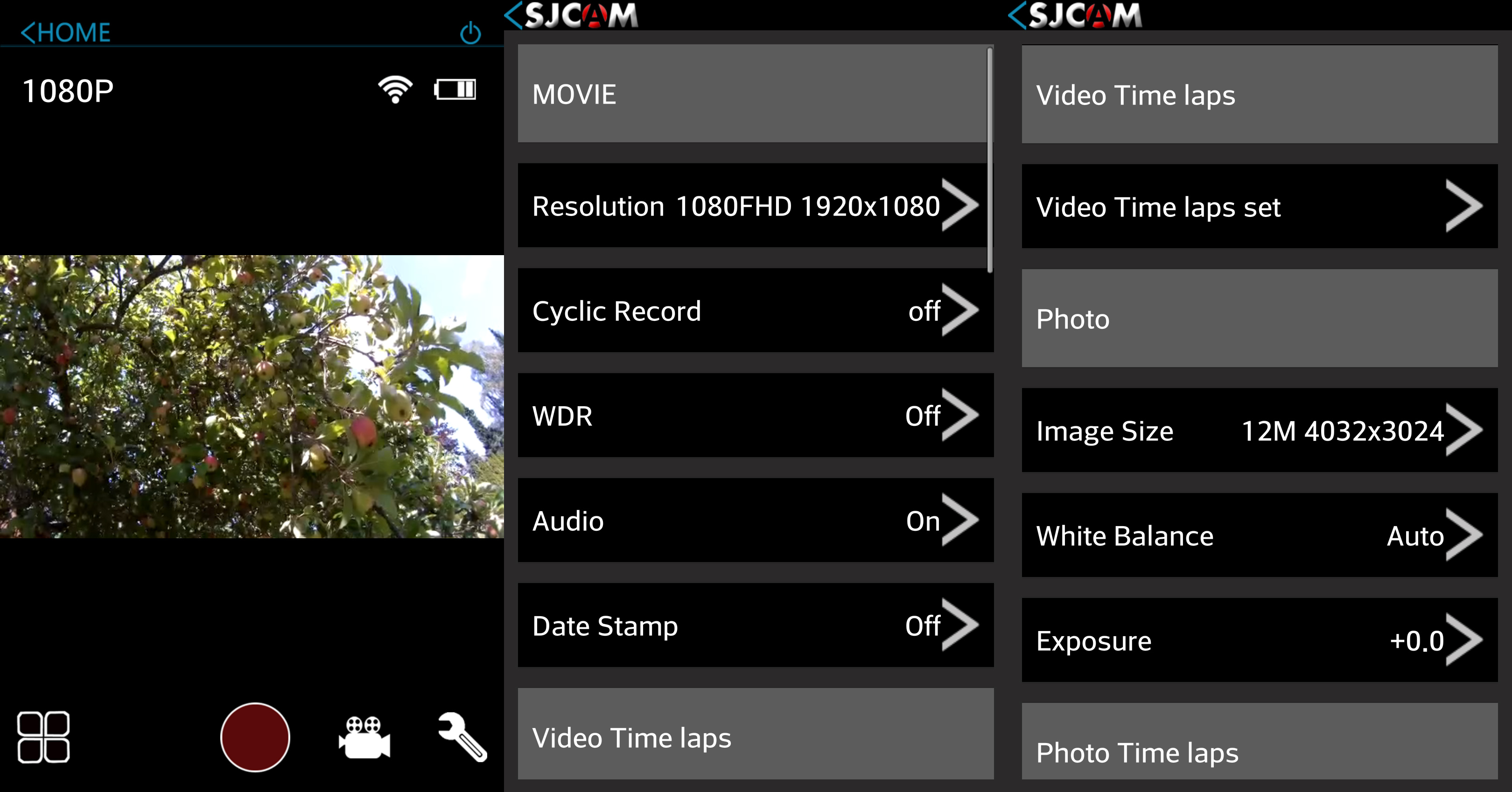 Die "SJCAM HP"-App erlaubt die Fernsteuerung per Mobilgerät: