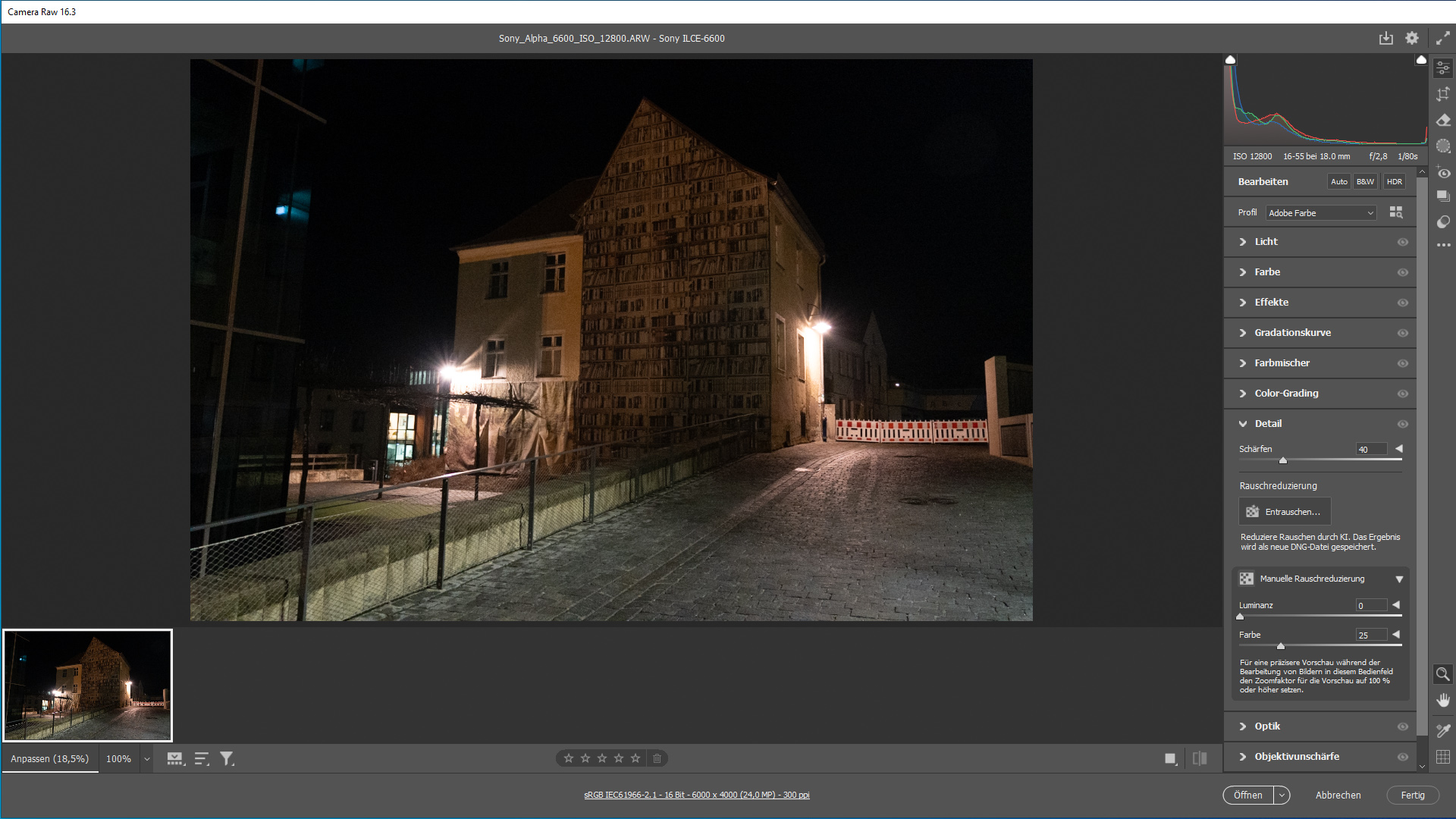 Rauschreduzierung mit Camera RAW