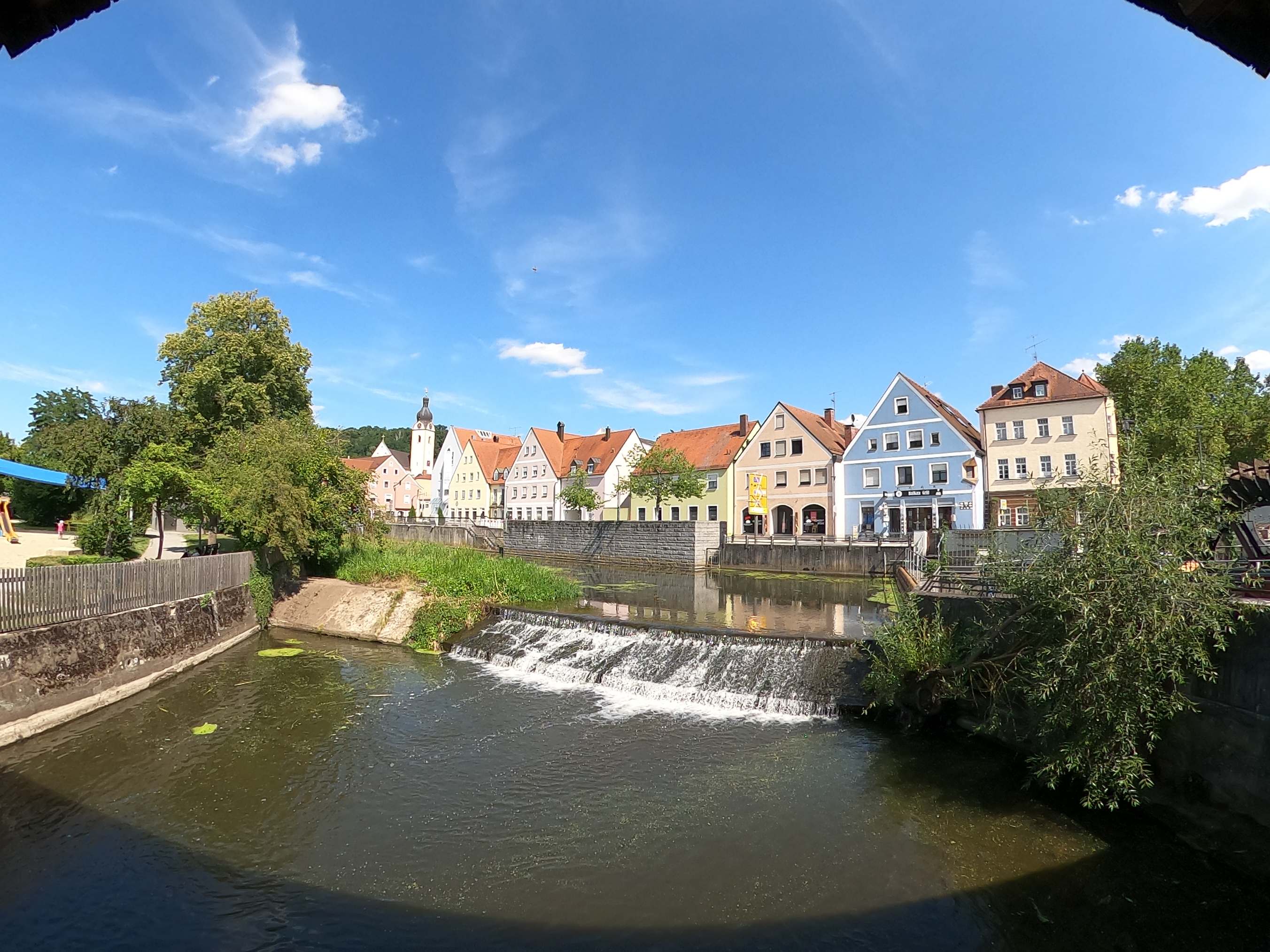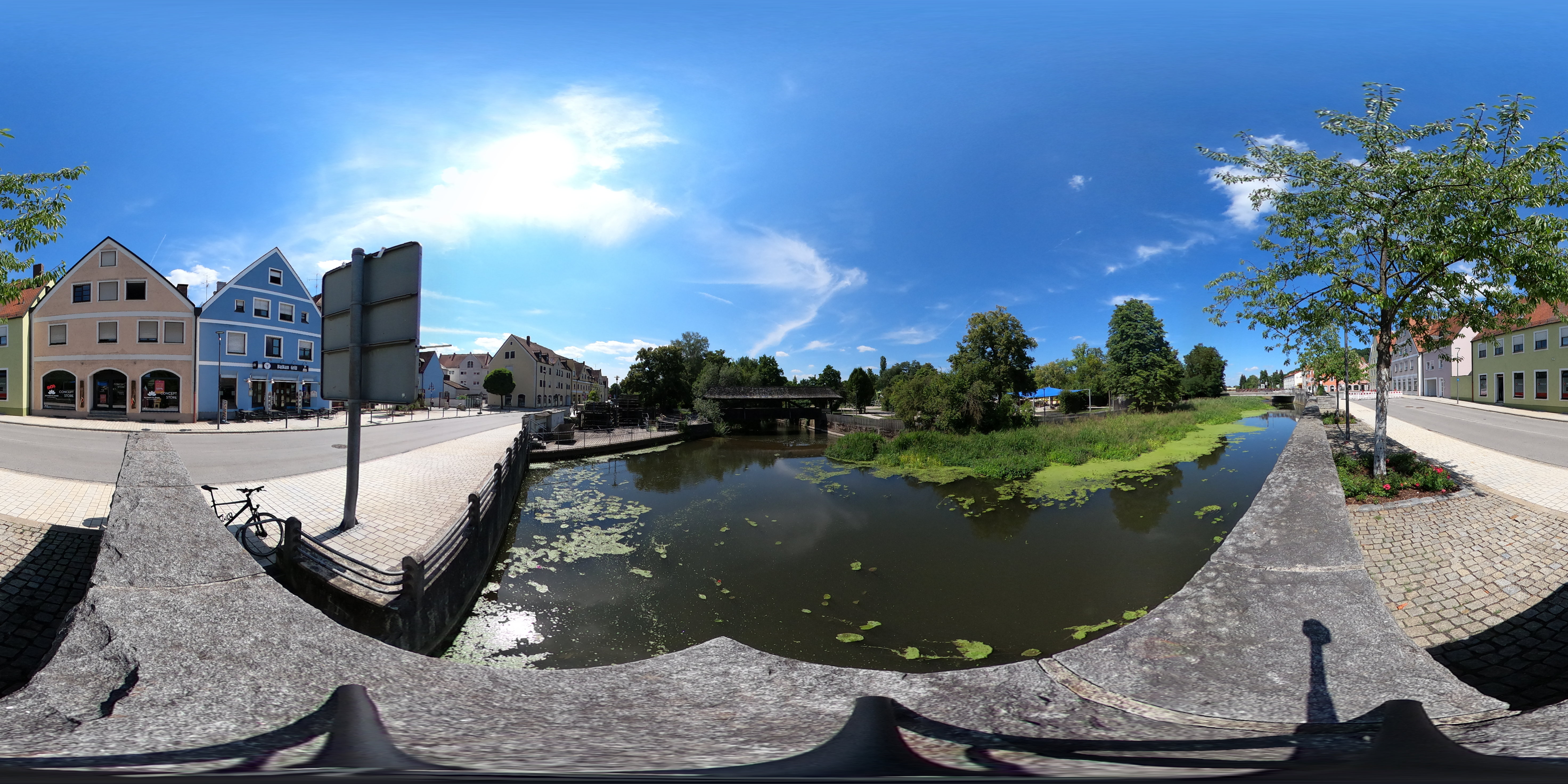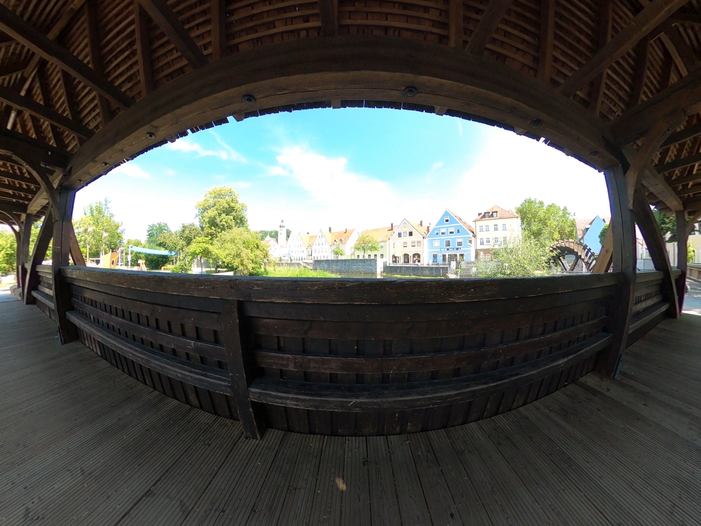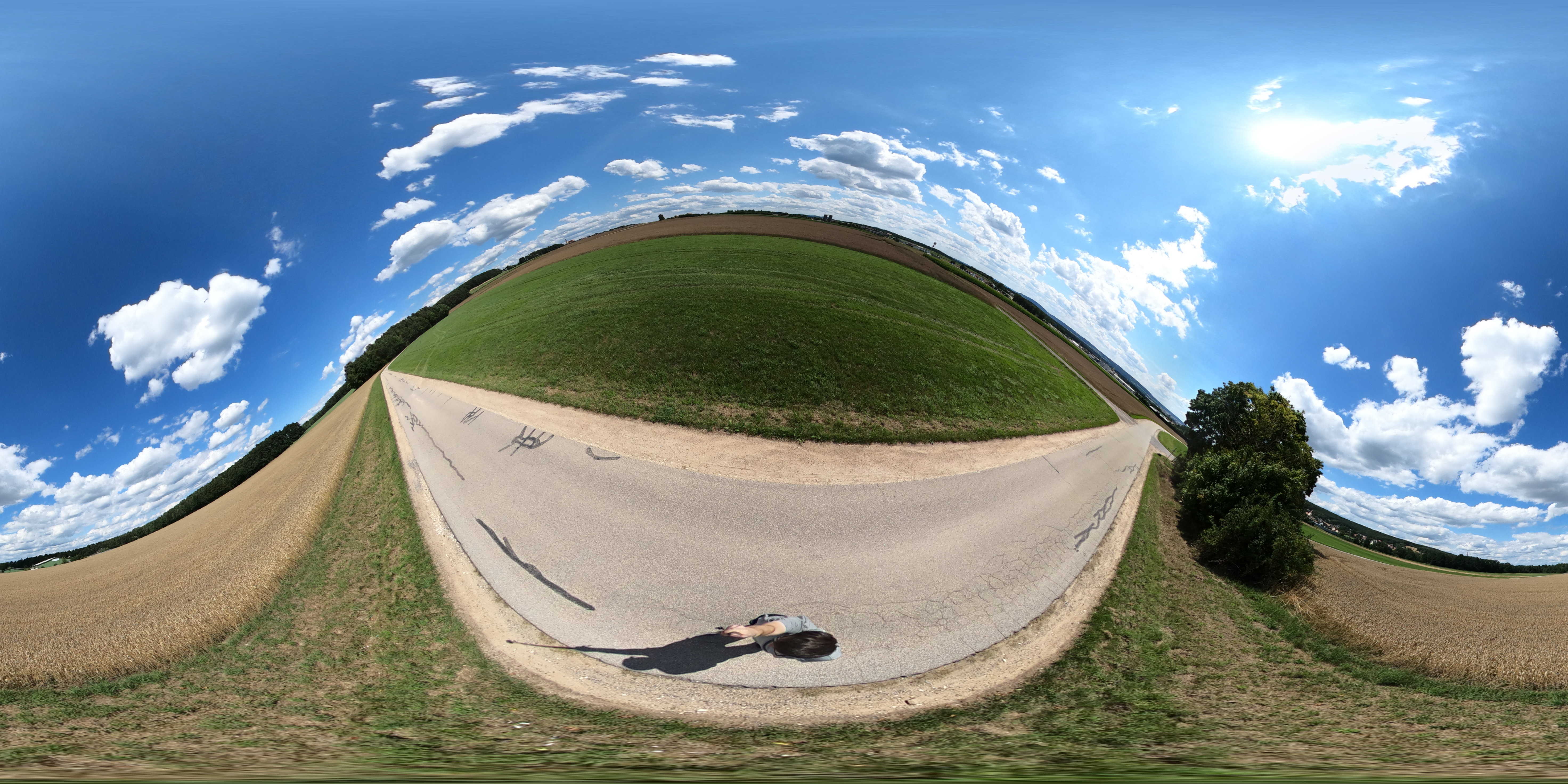 Die Abbildungsleistung der Objektive weiß grundsätzlich zu gefallen, Flares lassen sich bei direkter Sonneneinstrahlung aber durchaus erkennen. Chromatische Aberrationen halten sich in Grenzen, bei genauem Hinsehen kann man sie stellenweise aber doch sehen. Stitching-Fehler fallen auf, wenn sich die Kamera nicht weit genug von einem Objekt entfernt befindet. Einen Selfie-Stick, mit dem man die Kamera in der Hand hält, kann man zudem durchaus noch sehen.