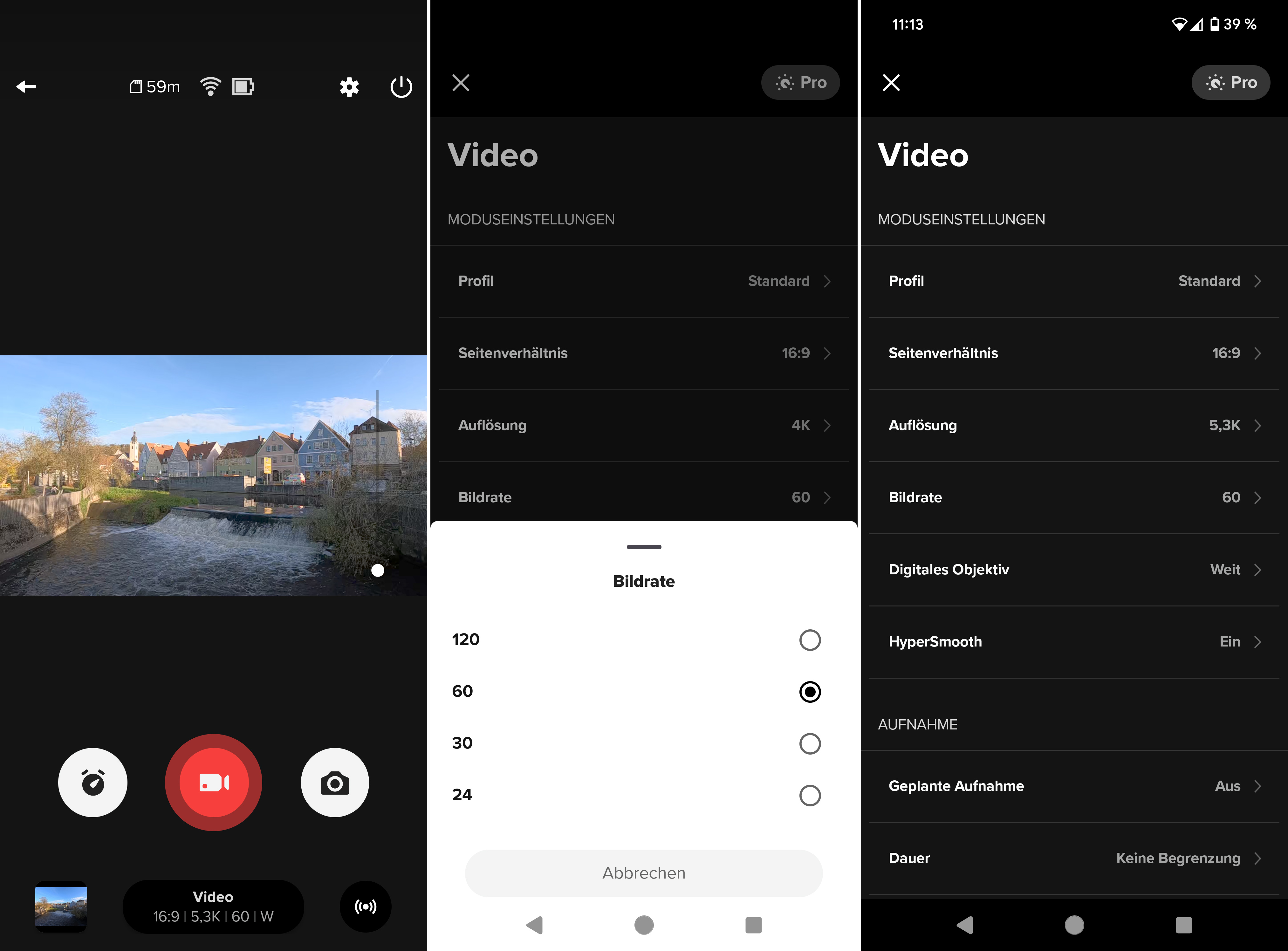 Manuelle Belichtungseingaben unterstützen alle drei Kameras, bei der Kamera von GoPro sind diese aber nicht so schnell vorzunehmen. Das haben Insta360 und DJI besser gelöst. Lobenswert: Konfigurierbare Aufnahme-Modi bringen alle drei Kameras mit, dadurch lassen sich bestimmte Einstellungen schnell und einfach nutzen.