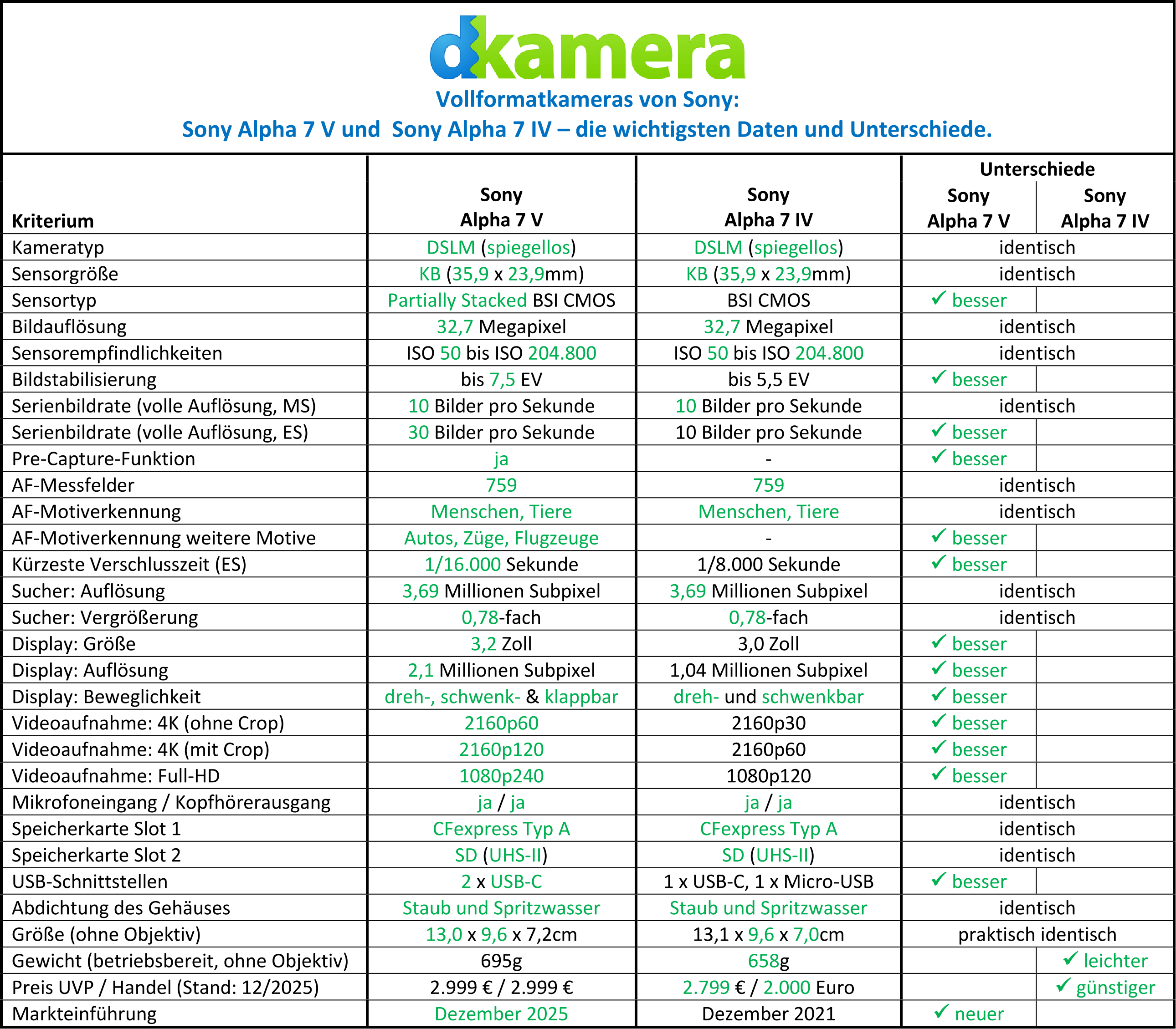Sony hat mit der Alpha 7 V das neue Basis-Modell der Alpha-7-Serie präsentiert. Hier setzt das japanische Unternehmen auf eine Reihe von neuen Hardware-Komponenten, die für zahlreiche Vorteile sorgen. In diesem Artikel gehen wir auf die wichtigsten Unterschiede der neuen Systemkamera und ihres direkten Vorgängermodells Sony Alpha 7 IV ein.