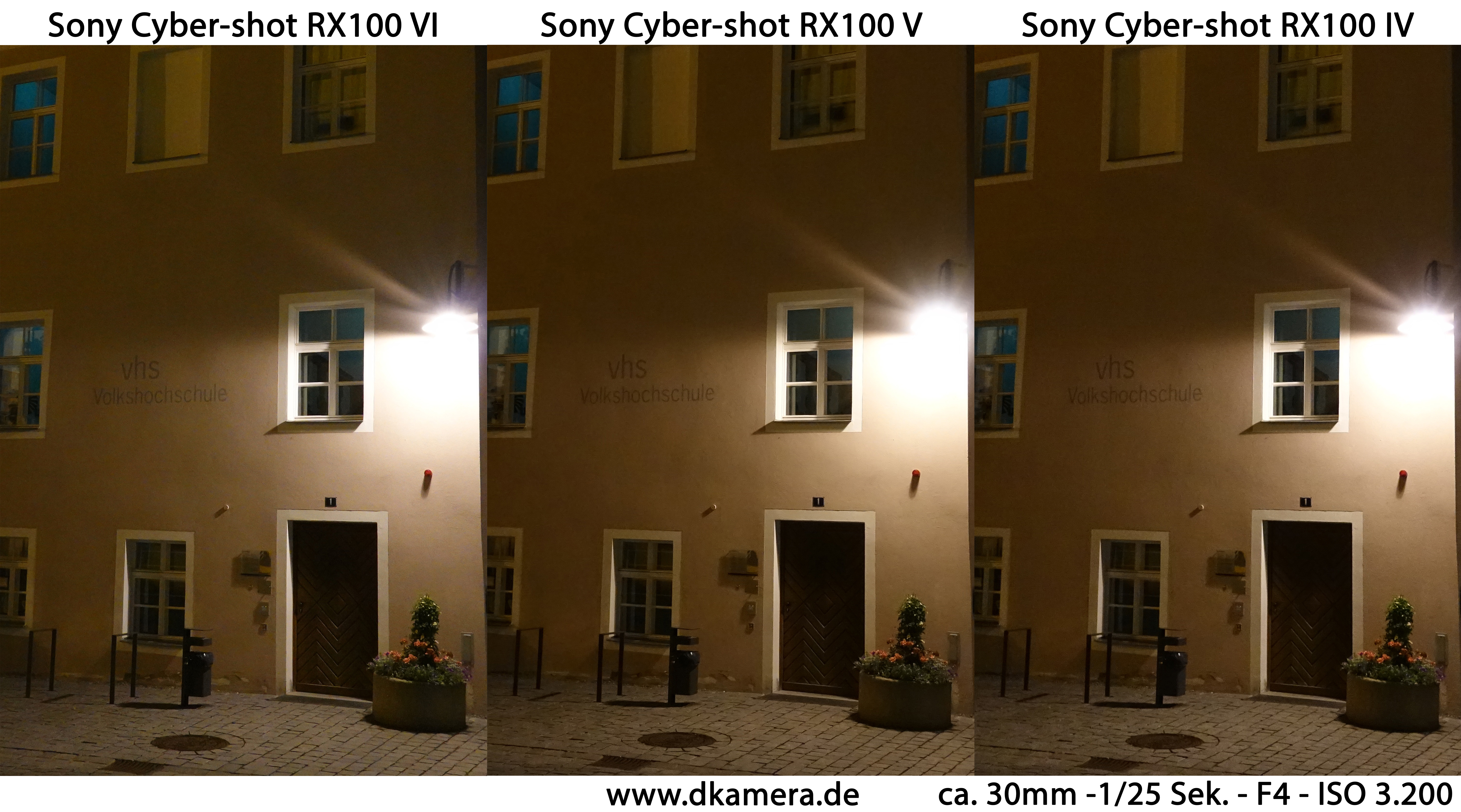 Vergleich der Bildqualität bei ISO 3.200 (Nacht):