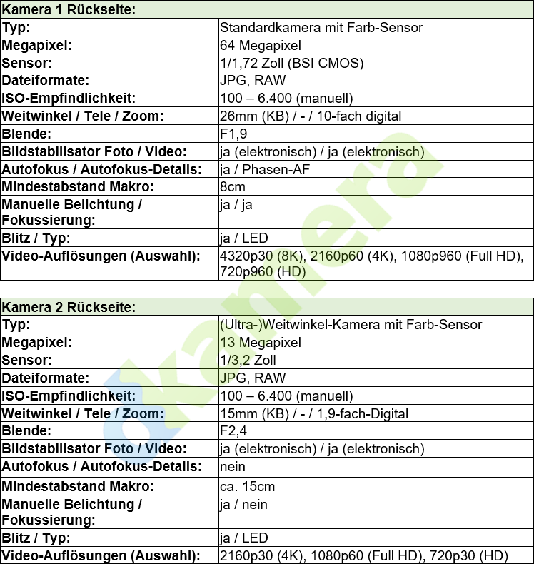 Das offiziell nicht abgedichtete Gehäuse beherbergt einen 4.700mAh starken Akku, dieser wird per USB-C aufgeladen. Kabellos geht dies nicht. Die Datenübertragung erfolgt per USB 2.0-Standard, kabellos zudem per WLAN (802.11a/b/g/n/ac/ax) und Bluetooth 5.1. GPS und NFC stehen ebenfalls zur Verfügung.