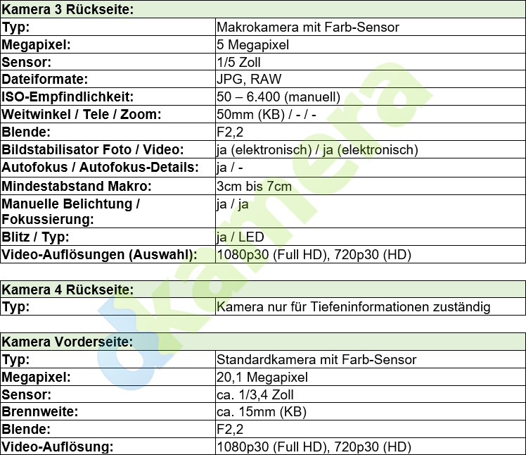 Kameras hat Xiaomi beim Poco F2 Pro insgesamt fünf verbaut. Vier befinden sich auf der Rückseite, eine liegt auf der Vorderseite. Die Hauptkamera mit 26mm Brennweite (KB) nutzt einen 1/1,72 Zoll Sensor mit 64 Megapixel, standardmäßig besitzen die Bilder allerdings nur 16 Megapixel. Hier kommt ein 4:1-Pixel-Binning zum Einsatz. Eine optische Stabilisierung steht nicht zur Verfügung, die Lichtstärke liegt bei F1,9. Die Aufnahme von Ultraweitwinkel-Fotos übernimmt ein in etwa 15mm-KB-Objektiv mit Blende F2,4. Xiaomi setzt hier auf einen in circa 1/3,2 Zoll großen Bildwandler mit 13 Megapixel. Als dritte Kamera wurde ein Modell mit fünf Megapixel verbaut. Diese ist allein für Makroaufnahmen gedacht und mit einem 24mm-Objektiv mit Blende F2,2 ausgerüstet. Die vierte Kamera speichert Tiefeninformationen und hilft beim Erzeugen des künstlichen Bokehs.