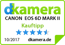 Die Canon EOS 6D Mark II ist eine Spiegelreflexkamera mit 26 Megapixel auflösendem Vollformatsensor. Die DSLR ist dadurch in der Lage, Bilder auch bei hohen ISO-Empfindlichkeiten mit einer guten Detailwiedergabe und einem niedrigen Bildrauschen aufzunehmen. Im Serienbildmodus speichert die EOS 6D Mark II bis zu 6,5 Bilder pro Sekunde, mit dieser Geschwindigkeit lassen sich 163 JPEG- oder 23 RAW-Bilder in Folge festhalten. Längere Bildserien sind daher durchaus möglich, für besonders lange Serien muss allerdings zum JPEG-Format gewechselt werden. Die automatische Fokussierung gelingt mit der Kamera sowohl beim Blick durch den Sucher als auch bei der Bildkontrolle über das LCD schnell, mit 45 Kreuzsensoren und der AF-Funktion bis F8 ist die 6D Mark II sehr ordentlich ausgestattet. Die Fokusmessfelder liegen als kleiner Nachteil jedoch alle im Zentrum.