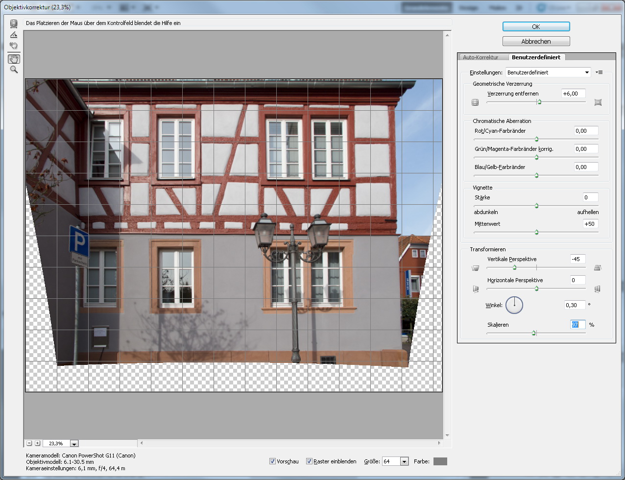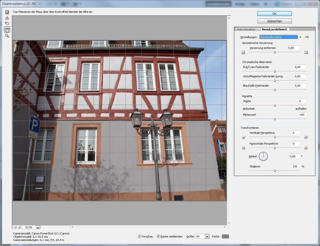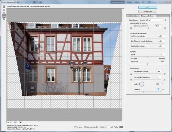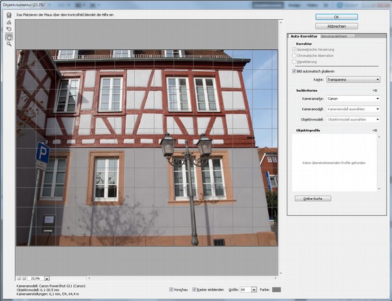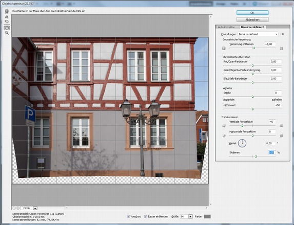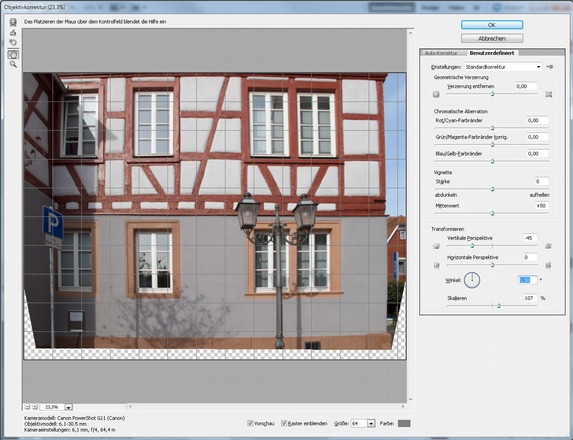 Objektivfehler und Verzeichnung über das Filter Objektivkorrektur beheben