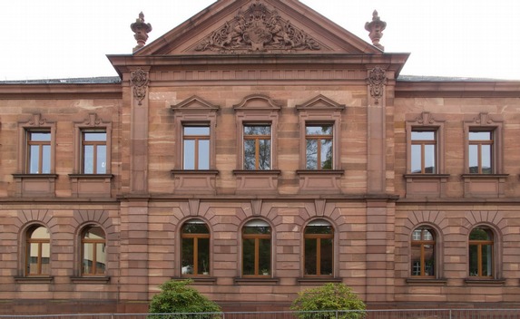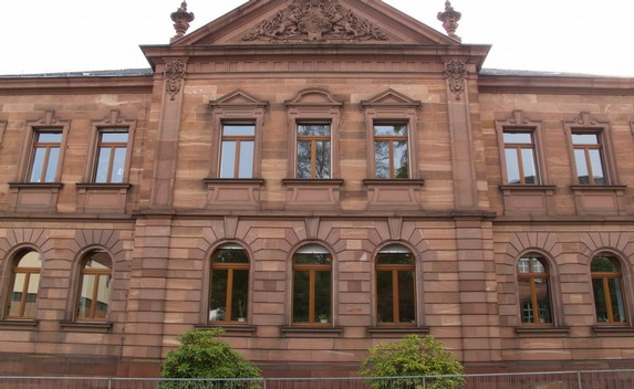 In unserem Beispielfoto sind die stürzenden Linien recht deutlich zu erkennen, die aus der Weitwinkeleinstellung und dem niedrigen Standpunkt der Kamera her rühren. Die im Weitwinkel meist auftretende Tonnenverzeichnung des Objektivs ist hier ebenfalls deutlich vor allem am Sockel und an der Dachrinne des Gebäudes zu erkennen.