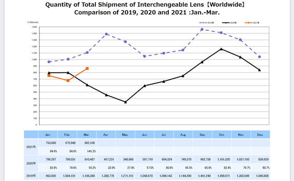 Die CIPA (Camera & Imaging Products Association) hat die Daten für das erste Quartal 2021 herausgegeben. Im Gegensatz zum ersten Quartal des letzten Jahres, das zumindest schon im März von der Corona-Pandemie deutlich beeinflusst wurde, konnten die großen Hersteller insgesamt gesehen mehr Kameras absetzen. Das Plus liegt im März 2021 bei rund 200.000 Stück. Nachdem die Vorjahresergebnisse im Januar und Februar 2021 bislang nicht erreicht wurden, war im März ein deutlicher Aufwärtstrend zu beobachten.