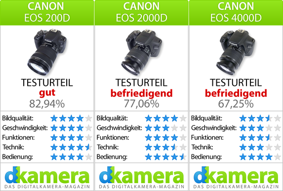 Die EOS 4000D kostet am wenigsten, die Liste der Abstriche und Nachteile ist aber lang. Sofern es das Budget hergibt, würden wir ganz klar zur EOS 200D raten.