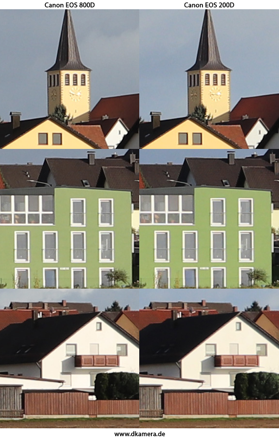 Beide Kameramodelle nehmen Bilder faktisch mit der identischen Detailwiedergabe und Bildqualität auf. Etwas anderes hätte uns wegen der gleichen Sensoren auch stark verwundert. Bei unserem Tagesvergleich mit ISO 100 geben die DSLRs viele Details wieder, bei starken Vergrößerungen wirken die Bilder jedoch „weicher“ als bei anderen Modellen mit 24 Megapixel.