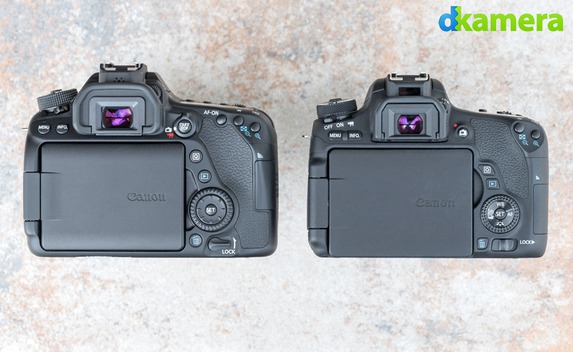 Bei den Bedienelementen ist bei der 760D das Fehlen des Liveview-/Videoschalters auf der Rückseite zu nennen. Damit kann bei der 80D schnell zwischen dem Liveview- und dem Videomodus gewechselt werden. Bei der 760D wird der Videomodus über die dritte Stellung des Ein-/Ausschalters erreicht. Des Weiteren fehlt der 760D die AF-On-Taste in der Nähe der Daumenablage. Auch diese Taste dürften einige Fotografen vermissen. Die restlichen Tasten hat Canon dagegen identisch positioniert. Bei der EOS 80D fallen diese zum Teil aber etwas größer aus.