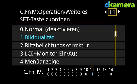 wird auch bei den Konfigurationsmöglichkeiten der Bedienelemente ersichtlich. Bei insgesamt acht Tasten/Einstellrädern lässt sich die Funktion beeinflussen, bei vier davon in einem größeren Umfang. Die 760D erlaubt dagegen gerade einmal bei einer Taste das freie Belegen.