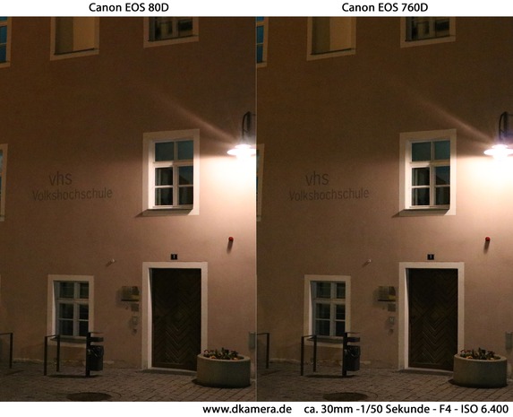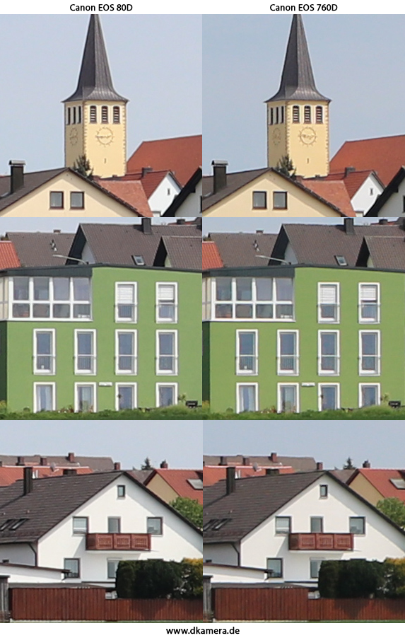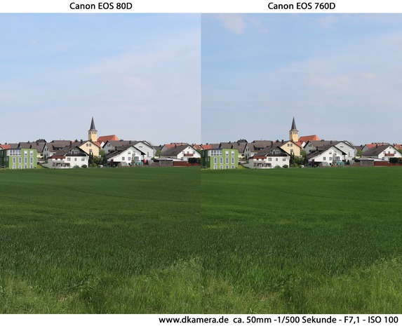 Zur Bildaufnahme werden zwei recht ähnliche Bildsensoren eingesetzt. Es handelt sich jeweils um APS-C-Sensoren mit Abmessungen von 22,5 x 15,0mm (80D) bzw. 22,3 x 14,9mm (760D). Die Auflösung beider Bildwandler liegt bei 6.000 x 4.000 Bildpunkten und somit insgesamt 24 Megapixel. Die ISO-Wahl kann zwischen 100 und 25.600 erfolgen, bei der 80D nicht nur in ganzen, sondern auch in Drittelstufen. Bei ISO 25.600 handelt es sich jeweils um eine High-Erweiterung. Die höchste native Sensorempfindlichkeit liegt bei ISO 16.000 (80D) bzw. ISO 12.800 (760D).