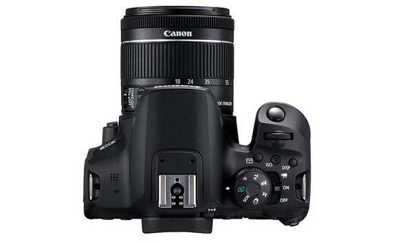 Die EOS 850D ist auf der Rückseite mit einem zusätzlichen Einstellrad ausgerüstet, dieses hat Canon mit dem Steuerkreuz kombiniert. Die Position mancher Tasten wurde angepasst, im Vergleich zur EOS 800D ist zudem eine AF-On-Taste hinzugekommen. Auf der Oberseite bleibt mit drei Direktwahltasten (für die AF-Messfeldwahl, die Sensorempfindlichkeit und die Displayeinstellungen) vieles beim Alten, auf dem Programmwählrad sind allerdings nur noch sieben statt 13 Motivprogramme anzutreffen. Die weggelassenen Szenenmodi sind nun vermutlich unter den SCN-Programmen zu finden.