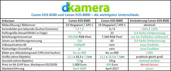 . Im folgenden Artikel gehen wir auf die wichtigsten Veränderungen der EOS 850D und EOS 800D ein.