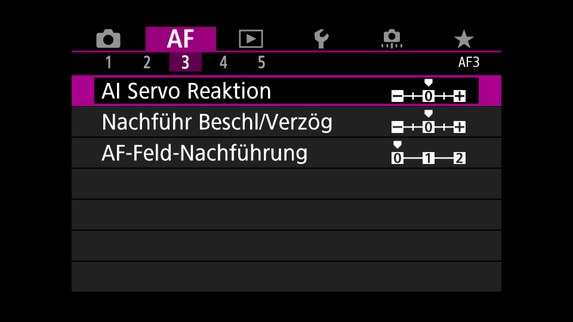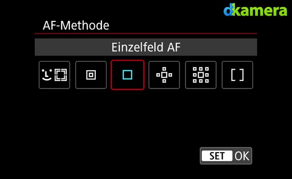 Ein wenig absetzen kann sich die EOS R in puncto AF-Optionen. Allerdings nicht, weil sie davon mehr zu bieten hat, sondern weil diese schneller zu erreichen sind. Dafür hat Canon der Kamera ein eigenes AF-Menü spendiert, bei der EOS RP muss man die meisten AF-Einstellungen in den C.Fn-Optionen suchen.