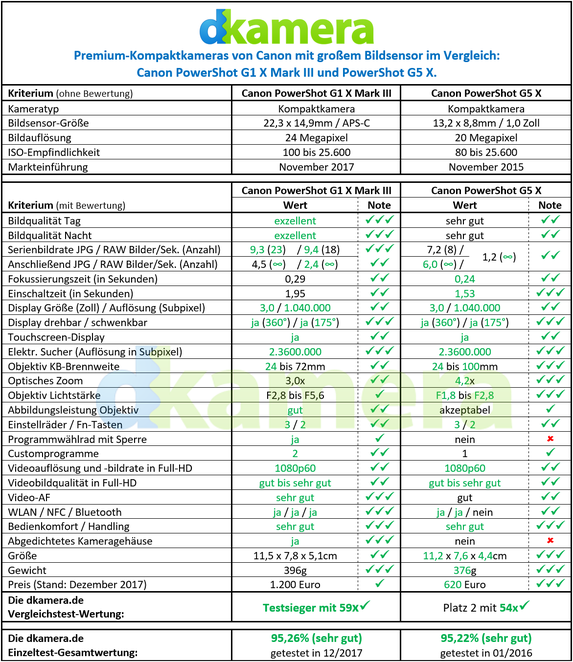 Die Canon PowerShot G1 X Mark III und die PowerShot G5 X sind Kompaktkameras der Premiumklasse. Sie setzen sich von „einfachen“ Kompaktkameras oder Modellen mit besonders großen Zoombereichen durch eine bessere Ausstattung, vor allem aber wesentlich größere Bildwandler ab.
