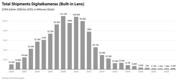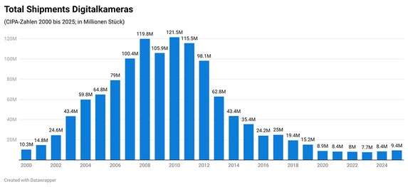 Gleichwohl dürfen die Zahlen nicht darüber hinwegtäuschen, dass trotz des deutlichen Zuwachses immer noch weit weniger Kameras als zu früheren Zeiten verkauft werden. 2020 waren es noch rund 3,6 Millionen Stück und vor zehn Jahren sogar 22,3 Millionen Stück. Der Großteil gehörte damals allerdings zu den einfacheren Kompaktkameras, die heutzutage von den großen Herstellern praktisch nicht mehr zu bekommen sind. Stattdessen bieten diese mehrheitlich Modelle mit großen Sensoren (1,0 Zoll und darüber) an, die zur Premiumklasse gehören. 2026 dürfte die Nachfrage nach High-End-Kompakten hoch bleiben, neue Modelle könnten den Trend sogar noch beschleunigen.