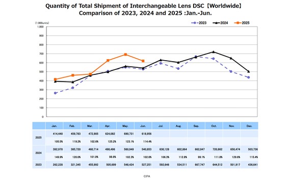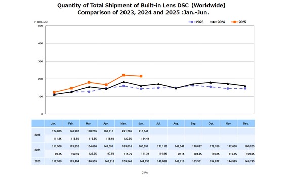 Die CIPA (Camera & Imaging Products Association) hat wie üblich zu Beginn des Monats August die Zahlen für die ersten sechs Monate des Jahres herausgegeben. Bislang entwickelt sich das Jahr 2025 deutlich positiver, als es die meisten wohl vermutet hätten. Kameras gingen in allen Monaten deutlich häufiger als 2024 über die Ladentheken, das gilt auch für Modelle mit fest verbautem Objektiv. Das ist umso erstaunlicher, da auch schon die Zahlen des letzten Jahres über den Zahlen des Jahres 2023 lagen.
