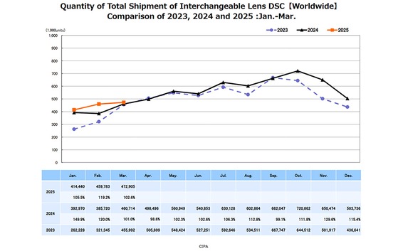 Nachdem die in der CIPA organisierten größten Kamera- und Objektivhersteller schon Anfang 2025 einen erfreulichen Abschluss des Jahres 2024 vermelden konnten, sieht es im ersten Quartal des aktuellen Jahres weiter gut aus. Sowohl Kameras als auch Objektive verkauften sich von Januar bis März besser als im gleichen Zeitraum des Vorjahres. Das gilt nicht nur für Systemkameras mit wechselbaren Objektiven, sondern auch für Kameras mit fest verbautem Objektiv.