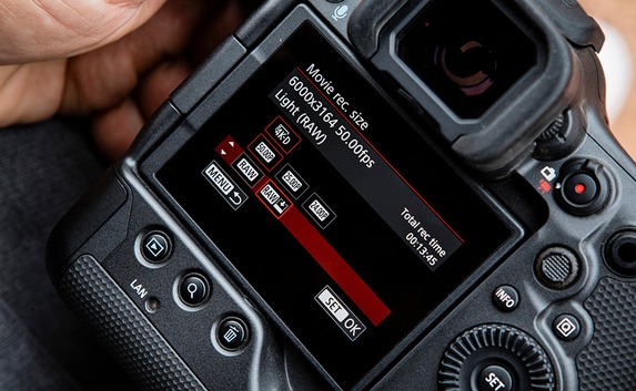lange Bildserien mit hoher Geschwindigkeit erreicht, setzt Canon nicht nur auf einen großen Pufferspeicher, sondern auch den Einsatz schneller Speicherkarten. Neben einem CFexpress-Modell des Typ B-Standards lässt sich als zweite Speicherkarte ein SD-Modell (Anbindung via UHS-II) einsetzen. Mit einer CFexpress-Karte schafft die EOS R3 mehr als 1.000 JPEG in Folge, mit einer SD-Karte sollen es 640 Bilder sein. Dafür sind natürlich schnelle Speichermedien notwendig. Eine hohe Schreibgeschwindigkeit ist zudem für die Videoaufnahmen nötig. Die Canon EOS R3 zeichnet Videos mit voller Sensorbreite in 6K- oder auch 4K-Auflösung auf. 6K-Videos hält sie im RAW-Format mit bis zu 60 Vollbildern pro Sekunde fest, 4K-Videos mit klassischer Codierung (All-I, IPB oder IPB-Light) sind mit bis zu 120 Vollbildern pro Sekunde möglich. Da bei 4K-Auflösung unabhängig von der Bildrate der gesamte Sensor ausgelesen wird (Oversampling), müssen Videografen auch bei Zeitlupen keine Qualitätsabstriche hinnehmen.