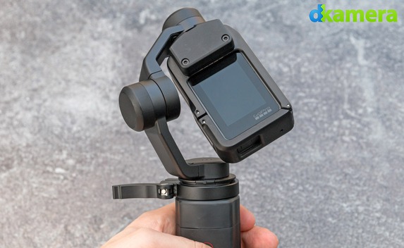 Die Halterung wird zwischen dem Griff und dem Gimbal-System eingesetzt: