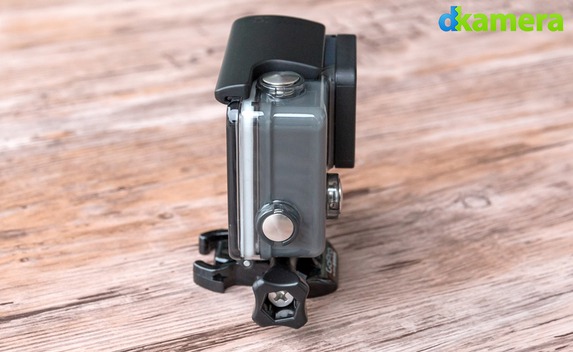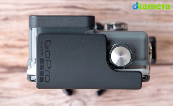 Das Kameragehäuse besteht wie üblich aus Kunststoff, mit einer maximalen Tauchtiefe von 40m sollte es selbst für geübte Taucher mehr als ausreichend sein. Geöffnet wird es mit dem von anderen Gehäusen bekannten Klappmechanismus, die Tür ist mit einer Gummierung abgedichtet. LEDs besitzt die HERO+ insgesamt drei. Die Untere auf der Vorderseite sowie die rückseitige LED (leuchten jeweils rot) signalisieren die Aufnahme, die obere LED auf der Vorderseite (leuchtet blau) zeigt die WLAN-Aktivität an.