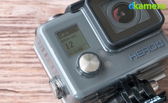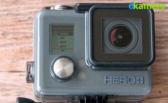 Bedient wird die GoPro HERO+ wie alle GoPro-Modelle ohne zusätzliches Display auf der Rückseite. Ein kleines monochromes LCD (circa 1,6 x 1,4cm groß) auf der Vorderseite erlaubt das Verändern von Einstellungen, zur Bildkontrolle ist es nicht geeignet. Die Steuerung der Actionkamera erfolgt über drei jeweils aus Metall bestehende Tasten. Die Taste auf der Oberseite dient zur Aufnahme von Bildern, dem Starten sowie Stoppen von Videos und der Bestätigung im Menü. Bei der vorderen Taste handelt es sich um den Ein- und Ausschalter (langes Drücken), ebenso wird damit auch durch das Kameramenü navigiert sowie zwischen den Aufnahmemodi gewechselt (kurzes Drücken).