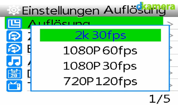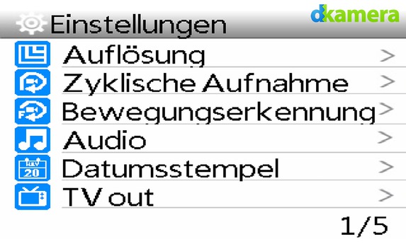 Die Menüs sind klar beschriftet, hier sollten keine Fragen entstehen. Zahlreiche Einstellungsmöglichkeiten erlauben das Verändern von Parametern. Neben dem Einstellen der Foto- und Video-Auflösung lassen sich unter anderem eine Intervallaufnahme starten (mit 3, 5, 10 oder 20 Sekunden-Sequenz), können Intervallvideos (1, 2, 5, 10, 30 Sekunden und eine Minute) aufgenommen werden und besteht die Möglichkeit die Belichtung (+-2 Blendenstufen), den ISO-Wert (100, 200, 400, 800 und 1.600) sowie den Weißabgleich (Auto, Tageslicht, Wolkig, Kunstlicht und Neonlicht) einzustellen.