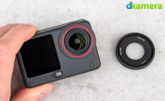 Als Objektiv nutzt DJI bei der Osmo Action 6 eine Festbrennweite mit 155 Grad Bildwinkel und einer variablen Blendenöffnung. Diese liegt zwischen F2 und F4. Die Naheinstellgrenze der Fisheye-Optik wird mit 20cm angegeben. Zu den Sichtfeldoptionen gehören „Extra weit“ (rund 11mm bei RockSteady-Stabilisierung), „Weit“ (circa 12mm), „Natürlich Weit“ (circa 12mm) und „Standard Entzerrung“ (circa 15mm).  Bei letzterer Option sind die Fisheye-Verzerrungen der Optik nicht mehr zu sehen. Wie schon bei älteren Actionkameras gilt, dass die genannten Sichtfeld-Optionen nicht bei allen Auflösungen und Bildraten zur Verfügung stehen.