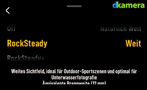 Als besten Kompromiss aus Bildfeld und Stabilisierungsleistung sehen wir die Rocksteady+-Stabilisierung an. Wer einen geraden Horizont benötigt, muss mit den erwähnten 60 Vollbildern pro Sekunde auskommen. Anders als bei der Osmo Action 5 Pro lässt sich mit der HorizonSteady-Option jedoch immerhin in 4K-Auflösung filmen.