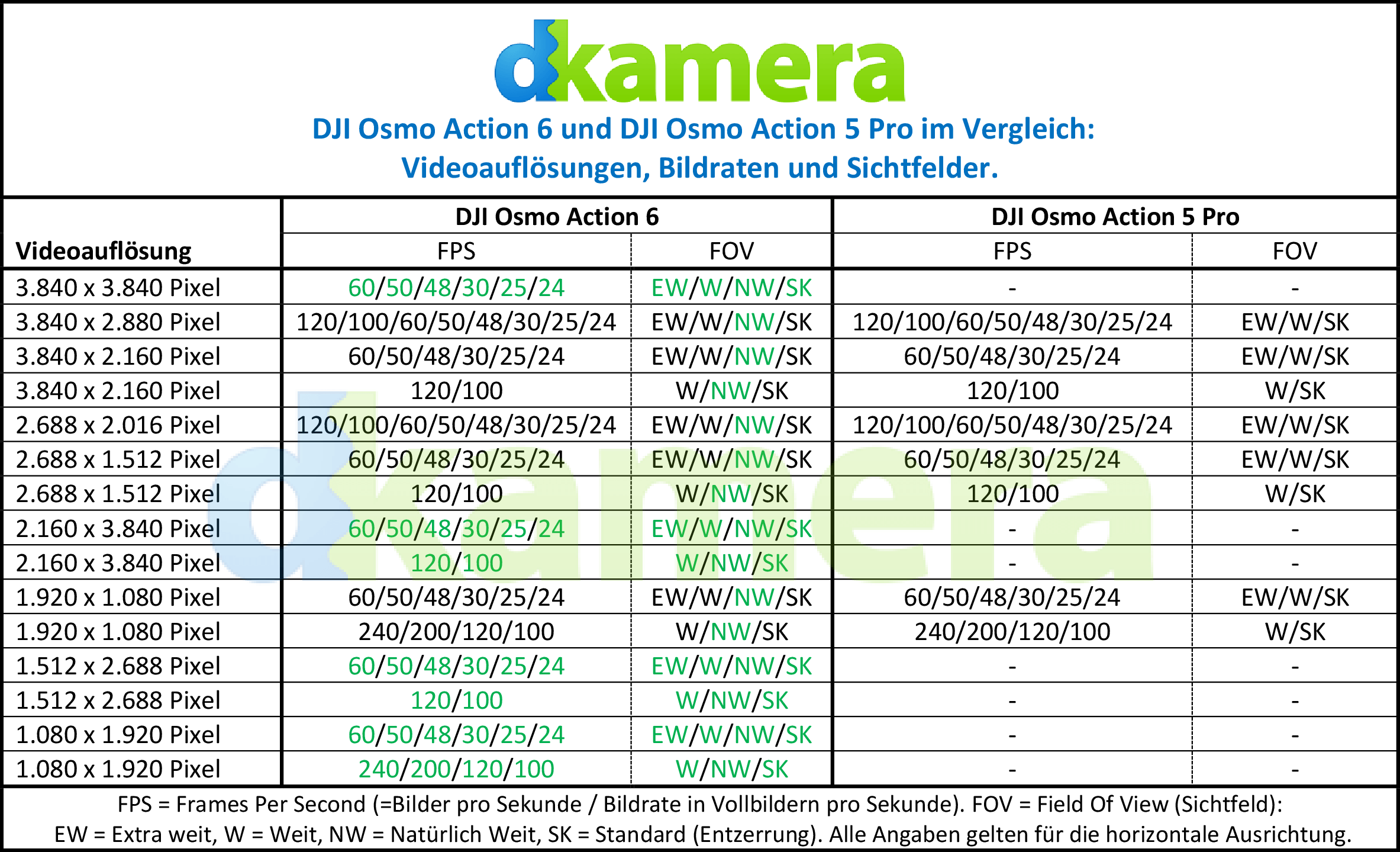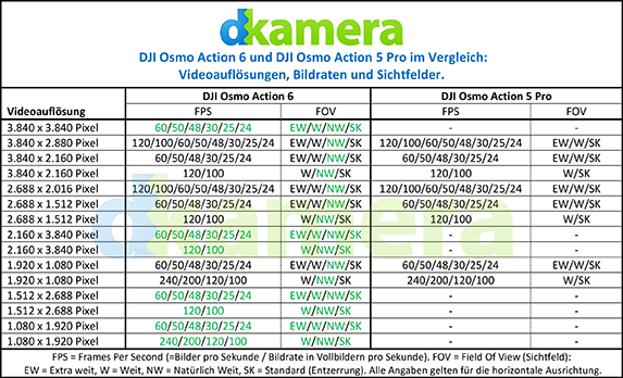 Die Foto-Auflösung der Action 6 fällt mit 38,5 Megapixel sogar etwas geringer als bei der Action 5 Pro (40 Megapixel) aus. Wer klassische Seitenverhältnisse nutzt, profitiert von den größeren Abmessungen also nicht. Dafür sind Freunde von 1:1- sowie Hochformataufnahmen im Vorteil.