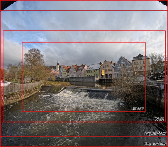 Die HERO11 Black Mini bringt aber nicht nur besonders große Bildwinkel mit, natürlich kann man sich auch für die klassische Weitwinkel-Option sowie kleinere FOV-Optionen entscheiden. Die Weit-Einstellung entspricht abhängig von den weiteren Einstellungen rund 16mm Brennweite, dabei handelt es sich um das „natürliche“ Bildfeld der Kamera. Für die FOV-Option „Linear+Horizontausgleich“ nennt GoPro 19 bis 33mm KB-Brennweite, für die „Linear“-Einstellung sind es 19 bis 39mm KB-Brennweite. Grundsätzlich gilt: Bei allen FOV-Optionen abseits der linearen Modi zeigen sich Fisheye-Verzerrungen. Dies ist allerdings nichts Neues und von den älteren GoPro-Modellen bekannt.
