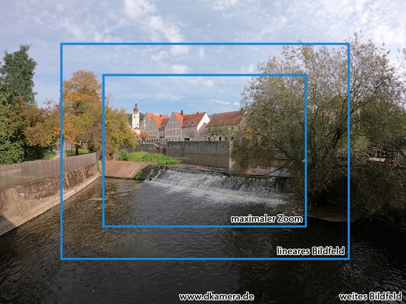 Links eine Aufnahme ohne Fisheye-Korrektur ("weit"), rechts mit ("linear"):