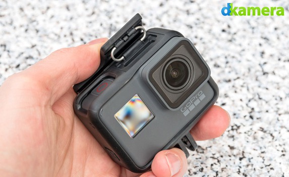Damit die GoPro HERO6 Black über die Halterungen befestigt werden kann, muss sie zuerst im „The Frame“ genannten Halterahmen verstaut werden. Diesen kennt man von der HERO5 Black. Das Einsetzen in den Rahmen erfolgt über die Rückseite, per Clip muss der Rahmen geschlossen werden.