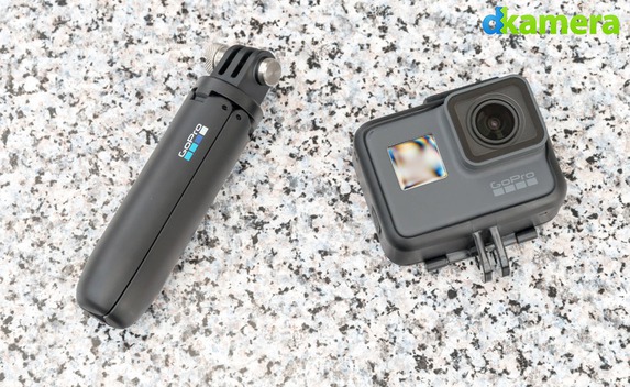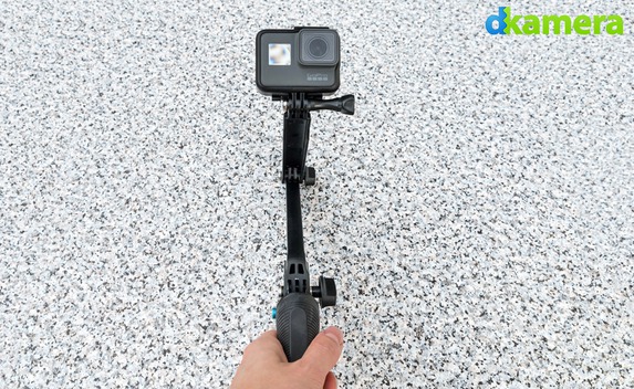 Zum Transport, als Selfie-Halterung oder als Stativ lässt sich die Mini-Verlängerungsstange „Shorty“ verwenden. Sie wird über den GoPro-Mount des „The Frame“ mit der HERO6 Black verbunden.