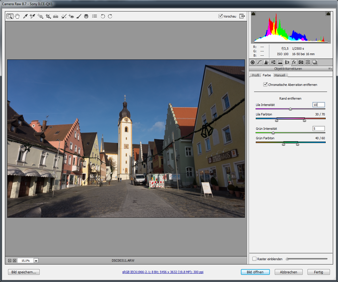 Korrektur von chromatischen Aberrationen mit Photoshop (Camera RAW):