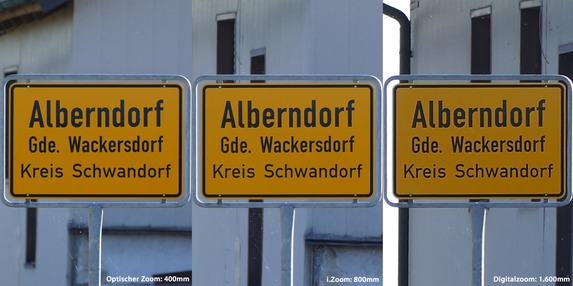 Vergleich des optischen Zooms mit dem "hochwertigen" digitalen und dem einfachen digitalen Zoom