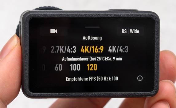 Deutlich zurück liegt bei Videos die DJI Osmo Action 5 Pro. Der hochauflösende Bildwandler wirkt sich auf die Auflösung der Videos nicht aus, die Actionkamera filmt maximal in 4K-Auflösung mit 3.840 x 2.880 Pixel (4:3) oder 3.840 x 2.160 Pixel (16:9). 4K-Videos erlauben die anderen beiden Actionkameras in diesem Vergleich natürlich auch. Zudem kann man sich für 2,7K oder Full-HD entscheiden.