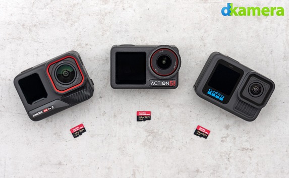 Zur Datenspeicherung setzen alle drei Kameras auf microSD-Speicherkarten. Diese sollten die VideoSpeedClass V30 unterstützen, damit es bei der Aufnahme mit hohen Auflösungen und Bildraten zu keinen Problemen kommt.