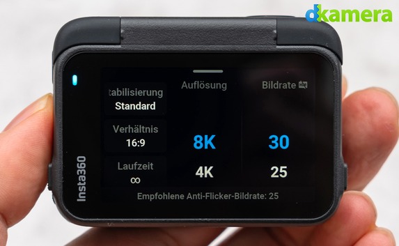 Das Front-LCD der Insta360 Ace Pro 2 zeigt nur Statusinformationen an: