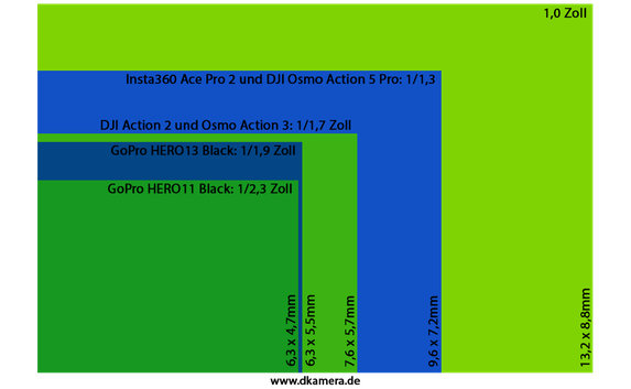 Die Sensoren verschiedener Actionkameras im Größenvergleich: