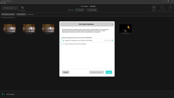 Im Bildbearbeitungsprogramm gilt es die Rauschreduzierung und die Objektivkorrekturen zu deaktivieren (sofern diese standardmäßig erfolgen), beim Verwenden von RAW-Dateien sind ansonsten keine weiteren Dinge zu beachten. Als kleiner Nachteil ist zu erwähnen, dass die Bildgröße der DNG-Dateien im Vergleich zu den Originaldateien deutlich zugelegt. Bei unseren Testdateien der Panasonic Lumix DC-S5 erhöhte sich die Dateigröße beispielsweise von 34 auf 84MB pro Bild. Da die DxO Labs empfehlen, die Originaldateien aufzuheben, nimmt der Speicherbedarf schnell zu.