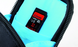 Damit die Digitalkamera beim Öffnen der Tasche nicht versehentlich herausfallen kann, wurden bei den Taschen der Berlin RS-Serie von Cullmann seitliche Schutzlaschen angebracht.