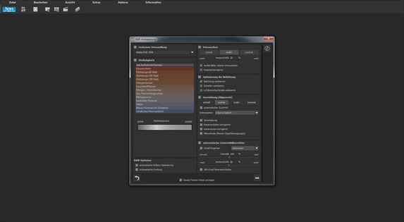 Bei einer HDR-Software drängt sich die Unterstützung für Rohdaten-Formate wegen des benötigten Dynamikumfangs förmlich auf. HDR projects 5 verfügt über einen eigenen RAW-Konverter mit vielen Einstellungsmöglichkeiten. Automatische Korrekturprofile fehlen allerdings. In unserem Test ließen sich fast alle RAW-Dateien öffnen, einzig mit den Bildern der Sigma dp2 Quattro und der FujiFilm X-T2 gab es Probleme.