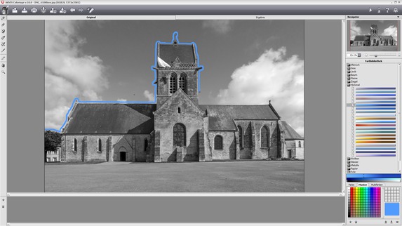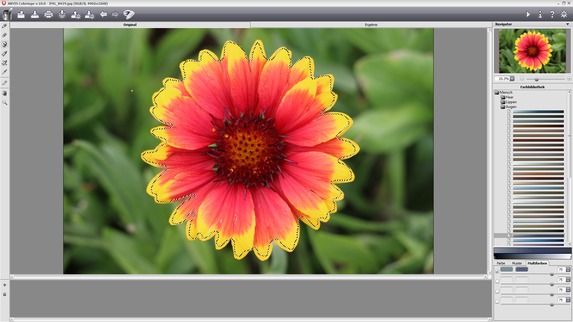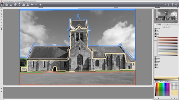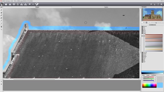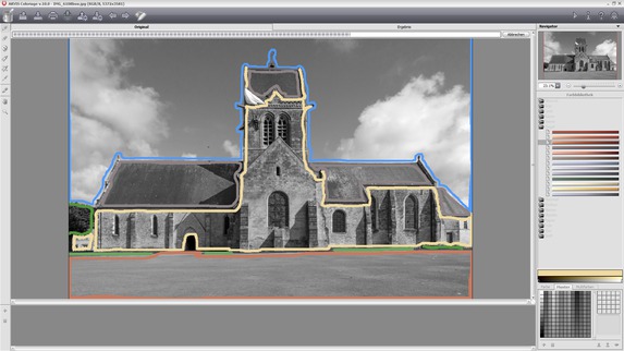 Das besondere Feature von X Color effects professional 10 bzw. Akvis Coloriage V.10 ist die Kantenerkennung. Daher müssen Markierungen nur grob vorgenommen werden, den Rest übernimmt die Software automatisch.