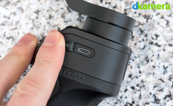 Am Griff befinden sich ein Micro-USB-Port zum Aufladen des integrierten Lithium-Ionen-Akkus (Kapazität 1.900mAh laut Webseite, 2.000mAh laut App), ein  Pistolenauslöser, ein Joystick und zwei Tasten. Der Pistolenauslöser erlaubt, wie schon beim Freevision Vilta, leider nicht das Starten von Videos oder das Aufnehmen von Bildern, damit wird nur zwischen den Betriebsmodi des Gimbals gewechselt. Das ist schade, denn der Auslöser wäre für das Starten von Videos zweifellos am besten geeignet.