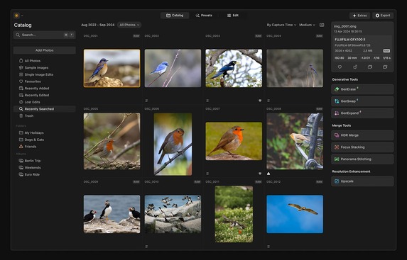 Verbesserungen finden sich laut Sklyum auch bei der Leistung sowie der Katalognavigation. Für Ersteres sorgen neue Algorithmen bei den Tools GenErase, GenSwap und GenExpand. Die Katalognavigation umfasst nun weitere Parameter wie das Kameramodell, die Brennweite, die Blende oder die Bewertung.