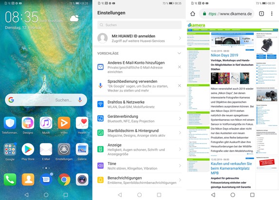 In der Theorie erreicht das Huawei Mate 20 Pro Bestwerte, in der Praxis punktet es mit einer jederzeit flüssigen Bedienung. Egal ob beim Laden von Apps, beim Wechseln des Screens oder bei der Arbeit mit der Kamera: Wartezeiten haben wir keine festgestellt. Die Rechenleistung wird auch in zwei bis drei Jahren noch für alltägliche Aufgaben mehr als ausreichend hoch sein. Der große Akku des Mate 20 Pro erlaubt trotz hoher Displayhelligkeit mehr als elf Stunden Videowiedergabe, dank der Schnelllade-Funktion lässt sich ein leerer Akku in einer halben Stunde um mehr als 50 Prozent aufladen (sofern der Ladestand unterhalb von 20 Prozent ist). Das kabellose Aufladen konnten wir nicht testen, es geht theoretisch aber nicht ganz so schnell wie das Aufladen per Kabel. Eine Besonderheit des Mate 20 Pro: Es lädt drahtlos sogar andere Geräte mit Wireless-Charging-Feature auf.