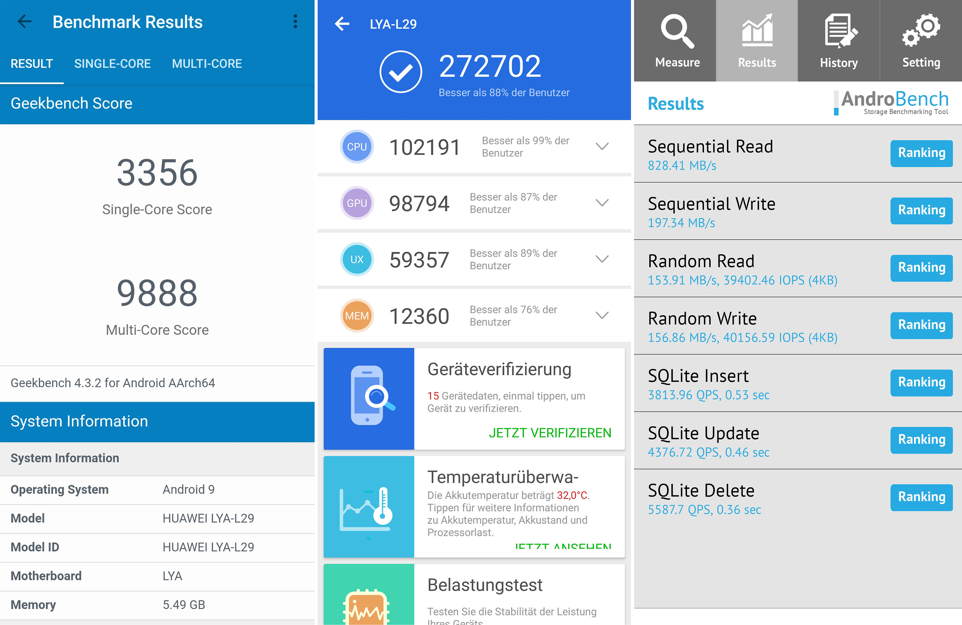 Wir haben folgende Benchmarks mit dem Huawei Mate 20 Pro Smartphone durchgeführt: